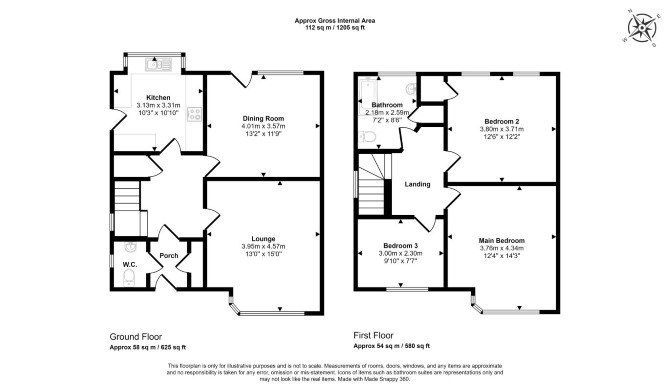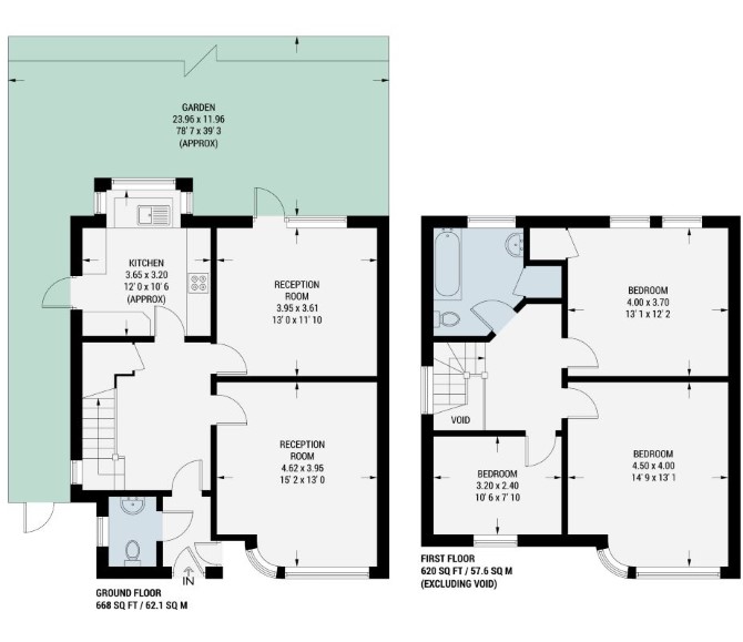 Ground Floor Two Reception Rooms Kitchen WC First Floor Three Bedrooms Bathroom GIA Approximately: 120 sq m (1,288 sq ft)