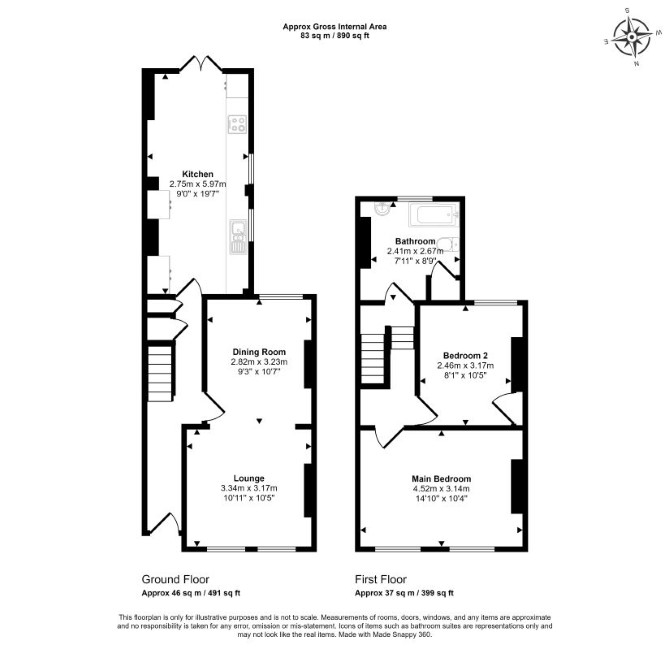 Ground Floor Through Reception Room Kitchen First Floor Two Bedrooms Bathroom