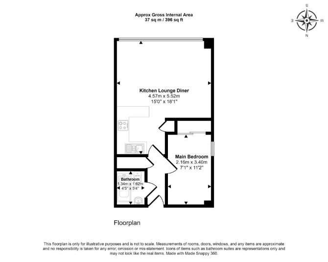 Tenth Floor Reception Room with Open-Plan Kitchen Bedroom Bathroom