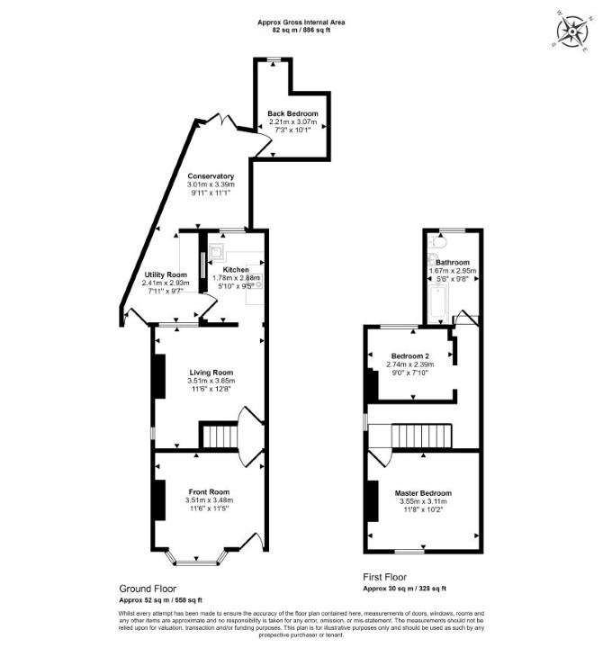 Ground Floor Reception Room Kitchen Bedroom Utility Room Conservatory First Floor Two Bedrooms Bathroom