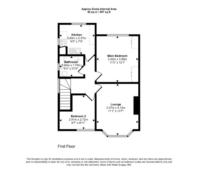 The property comprises a first floor two bedroom maisonette situated within an end of terrace building arranged over ground and first floors.