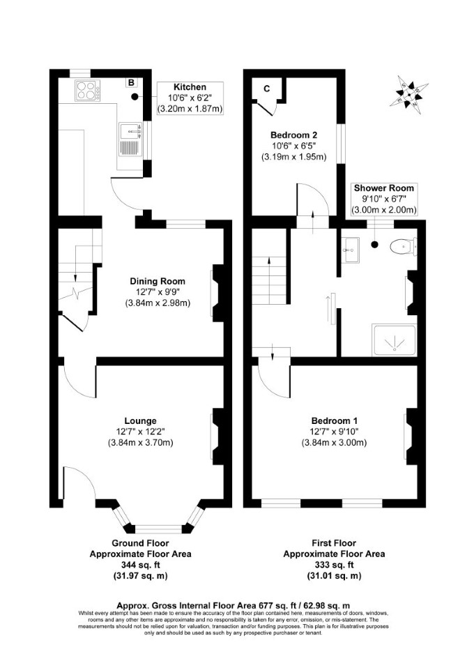 The property comprises a two bedroom semi detached house arranged over ground and first floors.