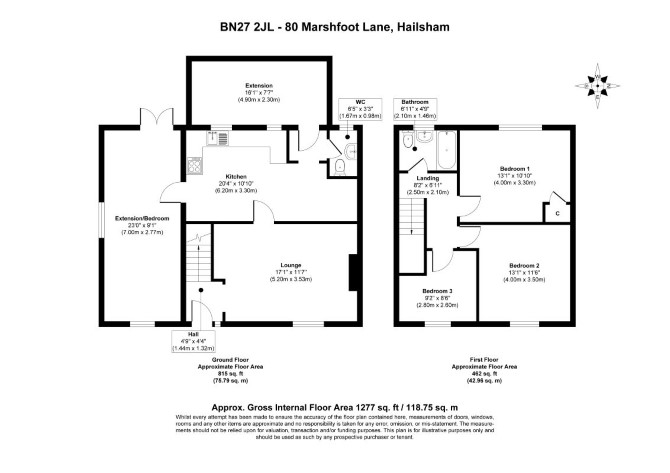 Ground Floor Three Rooms Conservatory W/C First Floor Three Bedrooms Bathroom