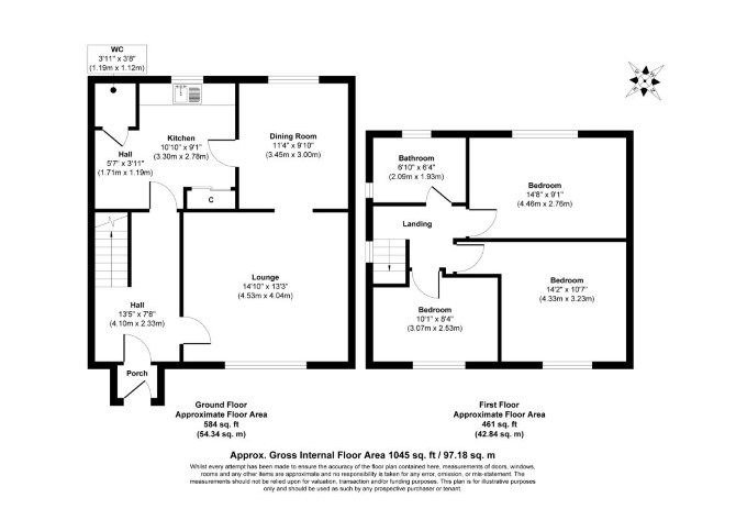 Ground Floor Reception Room Kitchen WC First Floor Three Bedrooms Bathroom