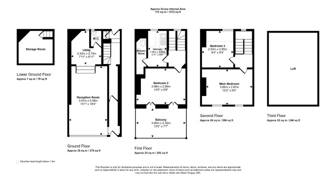 Lower Ground Floor Retail Unit G.I.A Measuring Approximately 128 sq m (12 sq ft) Ground Floor Retail Unit G.I.A Measuring Approximately 381 sq m (35 sq ft) First Floor Ancillary Space G.I.A Measuring Approximately 303 sq m (28 sq ft) Second Floor Ancillary Space G.I.A Measuring Approximately 282 sq m (26 sq ft)