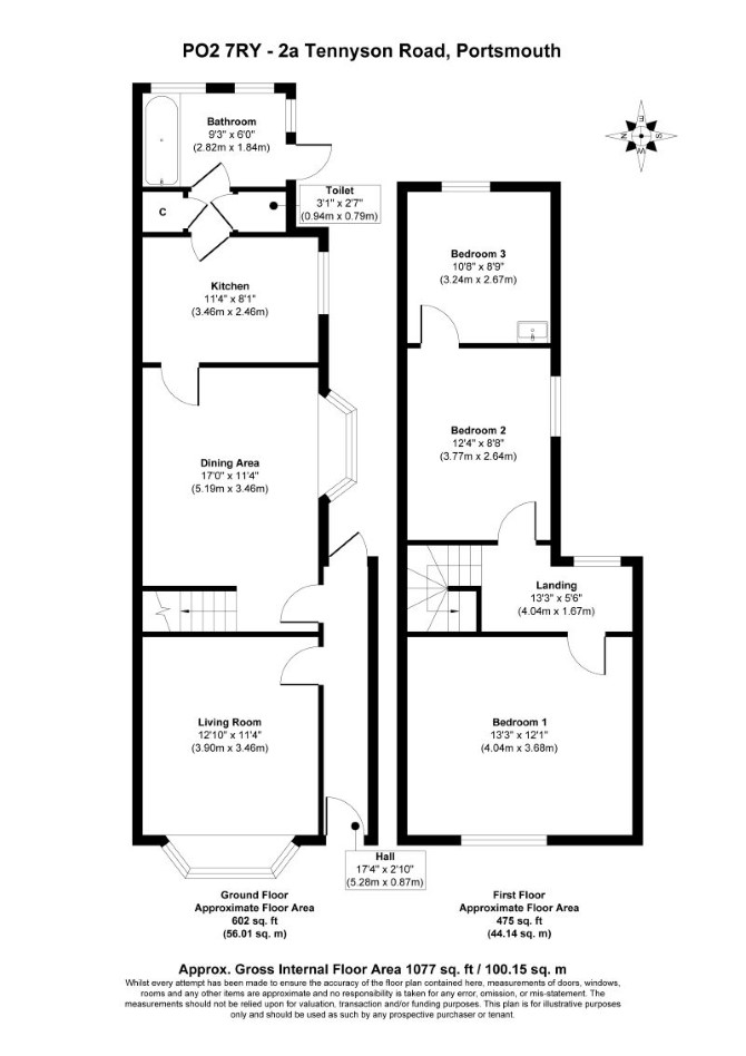 The property comprises a five room end of terrace house arranged over ground and first floors.