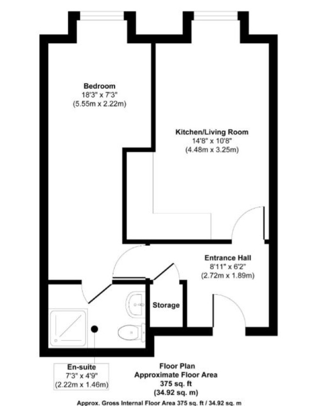 Ground Floor Reception Room with Open-Plan Kitchen Bedroom Bathroom