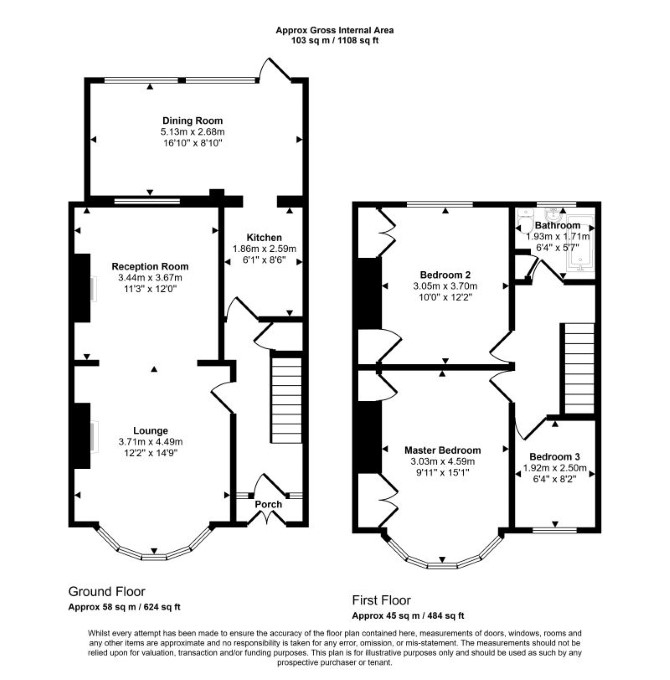 The property comprises a three bedroom end of terrace house arranged over ground and first floors.