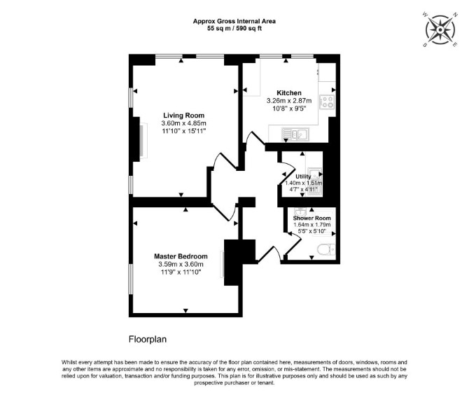 The property comprises a first floor one bedroom flat situated within an end of terrace building arranged over ground and first floors.