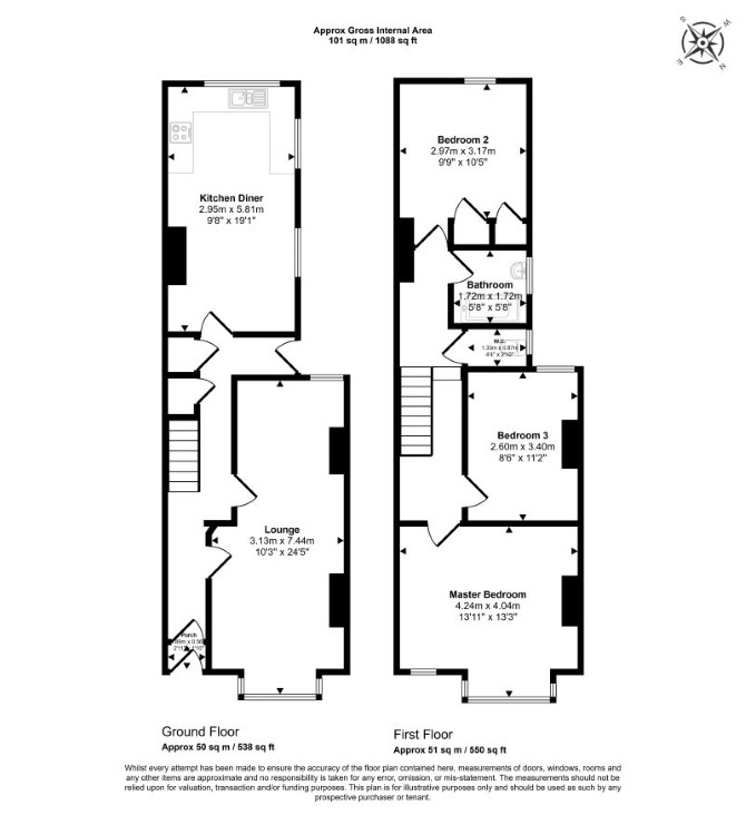 Ground Floor Two Reception Rooms Kitchen First Floor Three Bedrooms Bathroom