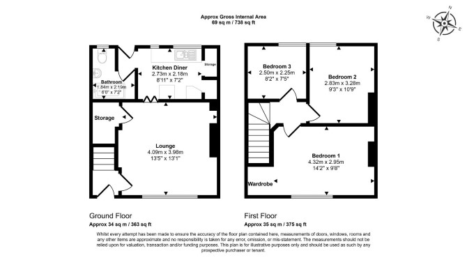 The property comprises a three bedroom mid terrace house arranged over ground and first floors.