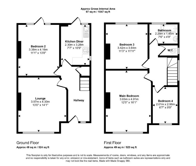 The property comprises a three bedroom semi detached house arranged over ground and first floors.