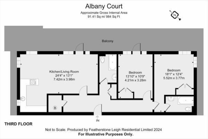 The property benefits from a private wrap around balcony and communal gardens.