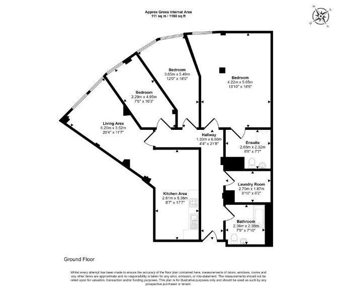 Ground Floor Reception Room Kitchen Three Bedrooms (One with En-Suite) Bathroom Utility Room G.I.A Approximately Measuring 111 sq m / 1,200 sq ft