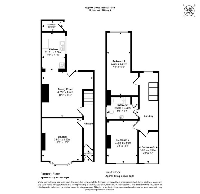 Ground Floor Two Reception Rooms Kitchen First Floor Three Bedrooms Bathroom