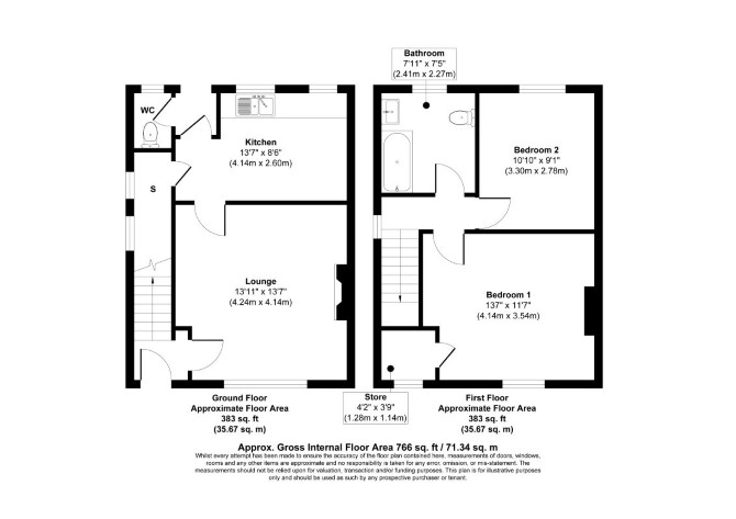 Ground Floor Reception Room Kitchen Separate WC First Floor Two Bedrooms Bathroom