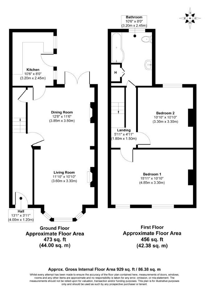 Ground Floor Through Reception Room Kitchen First Floor Two Bedrooms Bathroom