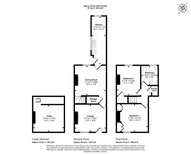 Basement Cellar Ground Floor Two Reception Rooms Kitchen First Floor Two Bedrooms Bathroom