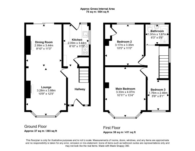 The property comprises a three bedroom end of terrace house arranged over ground and first floors.