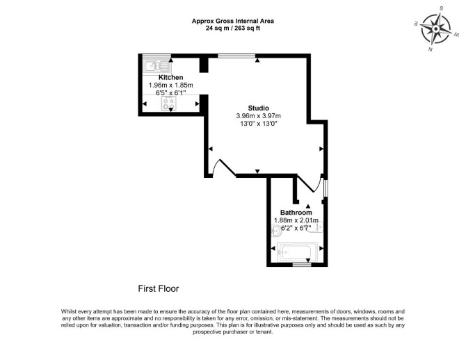 The property comprises a first floor studio flat situated within a detached building arranged over ground and two upper floors.