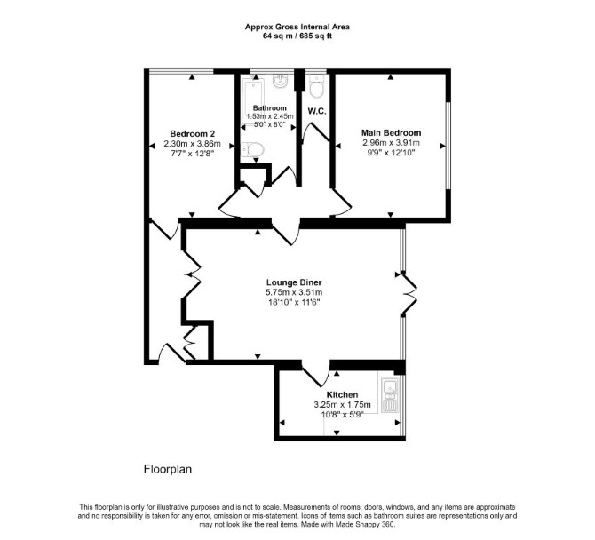 The property comprises a fourth floor two bedroom flat situated within a purpose built block arranged over ground and four upper floors. The property requires a program of refurbishment.