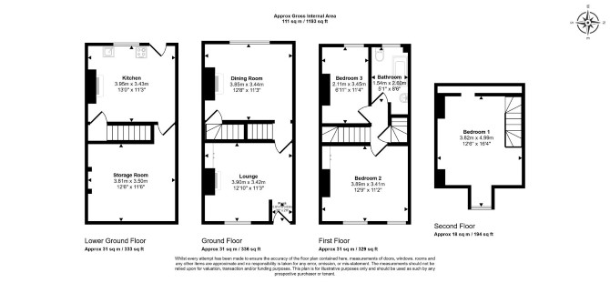 Lower Ground Floor Kitchen Basement Area Ground Floor Two Reception Rooms First Floor Two Bedrooms Bathroom Second Floor Bedroom