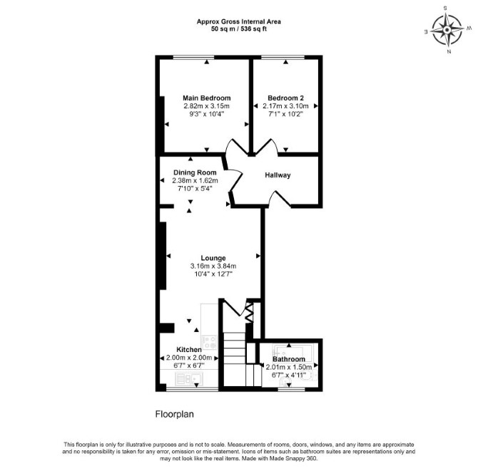 First Floor Reception Room with Open-Plan Kitchen Two Bedrooms Bathroom