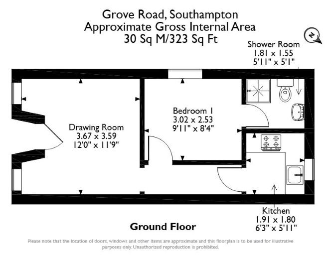 The property comprises a ground floor one bedroom flat situated within an end of terrace building arranged over ground and first floors