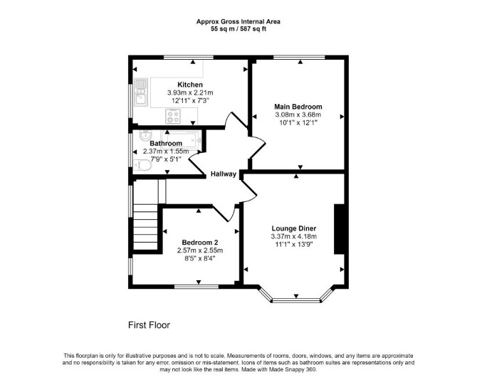The property comprises a first floor two bedroom maisonette situated within a purpose built block arranging over ground and first floors.