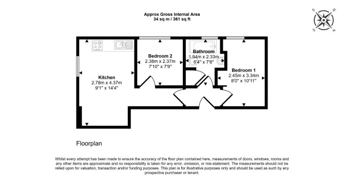 The property comprises a first floor two room flat situated within a purpose built block arranged over ground and two upper floors.