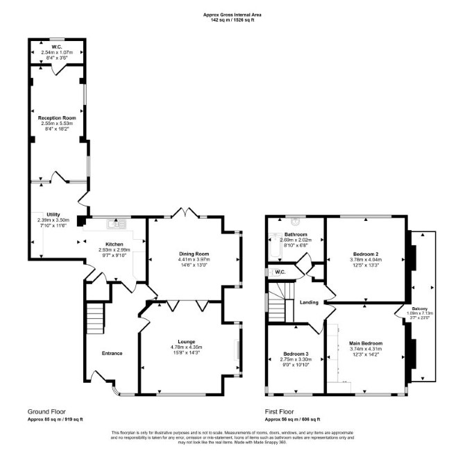 Ground Floor Reception Room Kitchen Study Bathroom First Floor Three Bedrooms Bathroom Separate WC Second Floor Loft Room