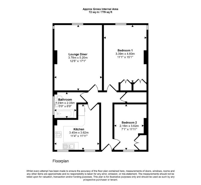 First Floor Open Plan Reception/Kitchen Two Bedrooms Bathroom