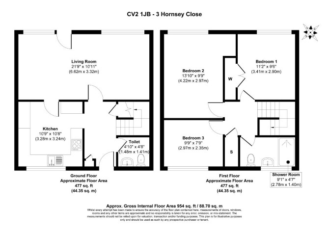 The property comprises a three bedroom mid terrace house arranged over ground and first floors.