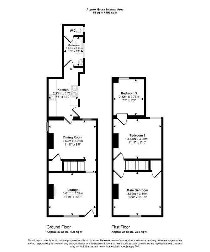 Ground Floor Two Rooms Kitchen Bathroom First Floor Three Rooms (one room is accessed through another)