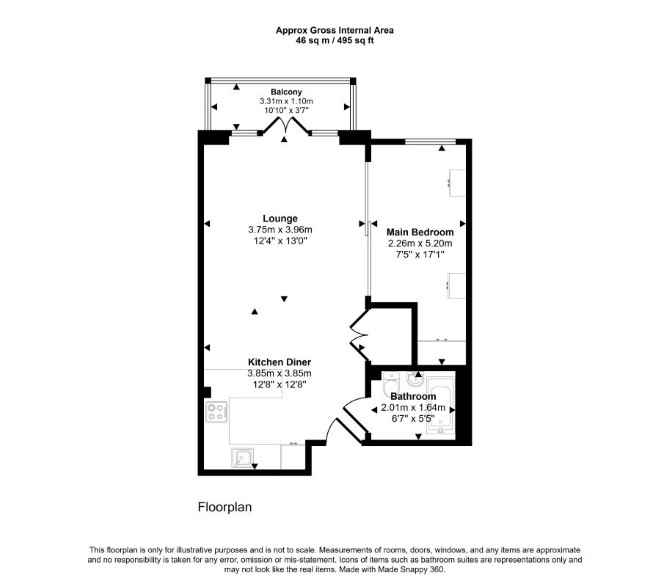 Fourth Floor Reception Room with Open-Plan Kitchen Bedroom Bathroom
