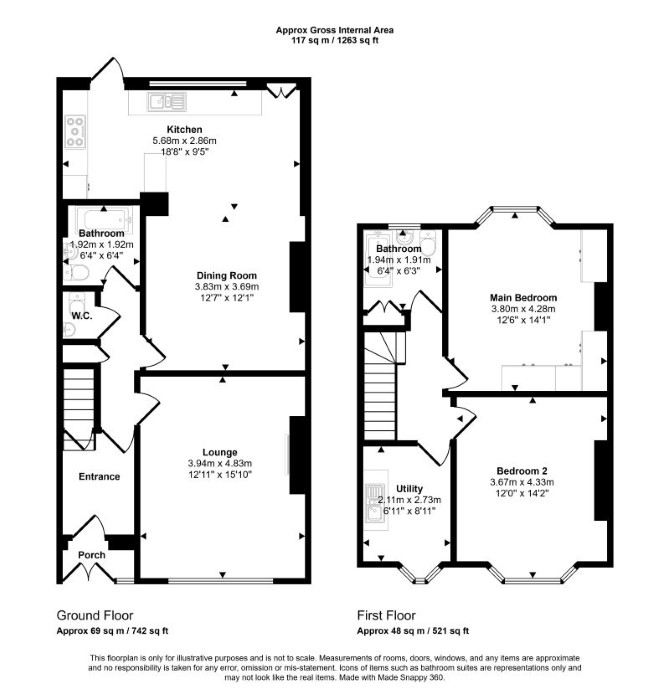 Ground Floor Flat 1 Reception Room with Open-Plan Kitchen Bedroom Bathroom WC G.I.A Approximately 70 sq m / 748 sq ft First Floor Flat 2 Reception Room Kitchen Bedroom Bathroom G.I.A Approximately 49 sq m / 531 sq ft