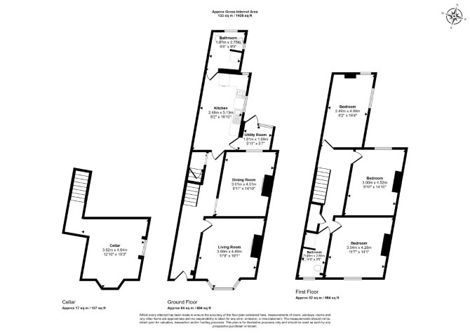 Lower Ground Floor Cellar Ground Floor Two Reception Rooms Kitchen Bathroom First Floor Three Bedrooms Bathroom