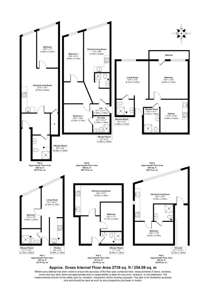 Ground Floor Retail Unit (A1 Use) - Approx G.I.A: 250 sq m First Floor Flats 1 and 2 Reception Room with Kitchenette Bedroom Bathroom Flat 3 Reception Room with Kitchentte Bedroom (with En-Suite) Second Floor Flat 4 and 6 Reception Room with Kitchenette Bedroom Bathroom Flat 5 Reception Room with Kitchenette Two Bedrooms (One with En-Suite) Bathroom