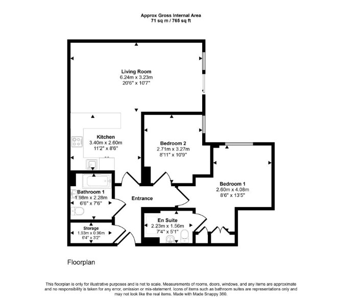 Seventh Floor Reception Room with Open-Plan Kitchen Two Bedrooms (One with En-Suite) Bathroom