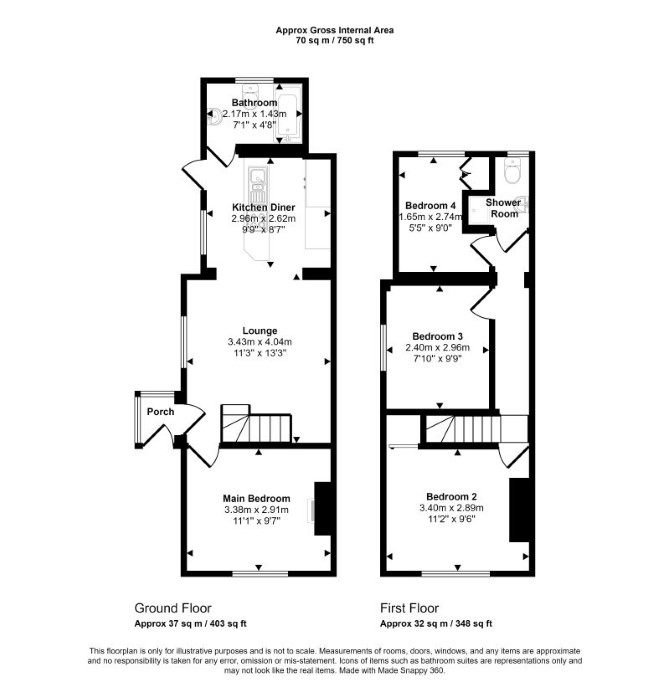 Ground Floor Two Reception Rooms (One with Open-Plan Kitchen) Bathroom First Floor Three Bedrooms Shower Room with WC