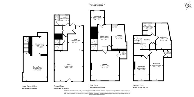 Lower Ground Floor Two Storage Rooms Ground Floor Retail Unit Bathroom First Floor Reception Room Kitchen Dining Room Bedroom Second Floor Three Bedrooms Bathroom