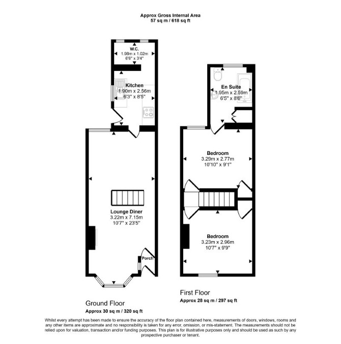 Ground Floor Two Reception Rooms Kitchen WC First Floor Two Bedrooms Bathroom