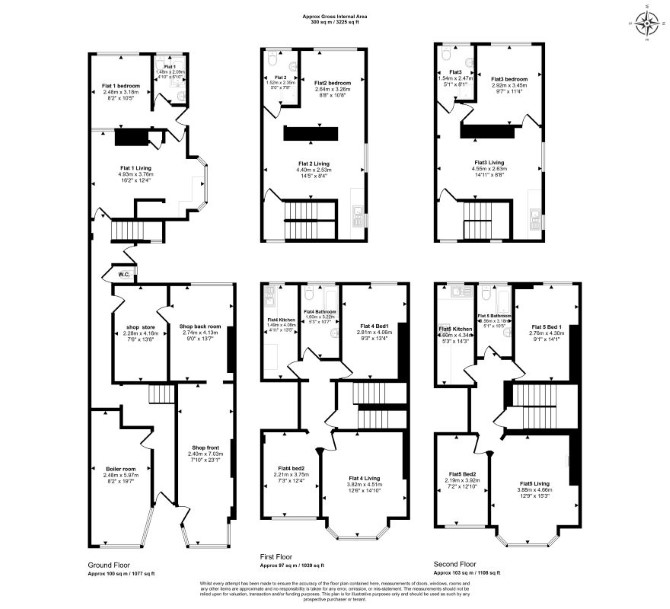 Ground Floor Retail Unit Office Flat 4 Reception Room with Open-Plan Kitchen Bedroom Bathroom First Floor Flat 1 Reception Room Kitchen Two Bedrooms Bathroom Flat 5 Reception Room with Open-Plan Kitchen Bedroom Bathroom Second Floor Flat 2 Reception Room Kitchen Two Bedrooms Bathroom Flat 6 Reception Room with Open-Plan Kitchen Bedroom Bathroom