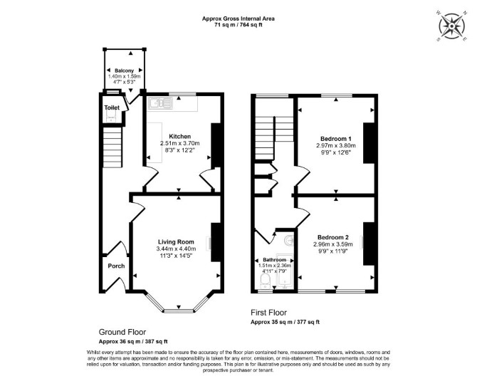 Ground Floor Reception Room Kitchen WC First Floor Two Bedrooms Bathroom