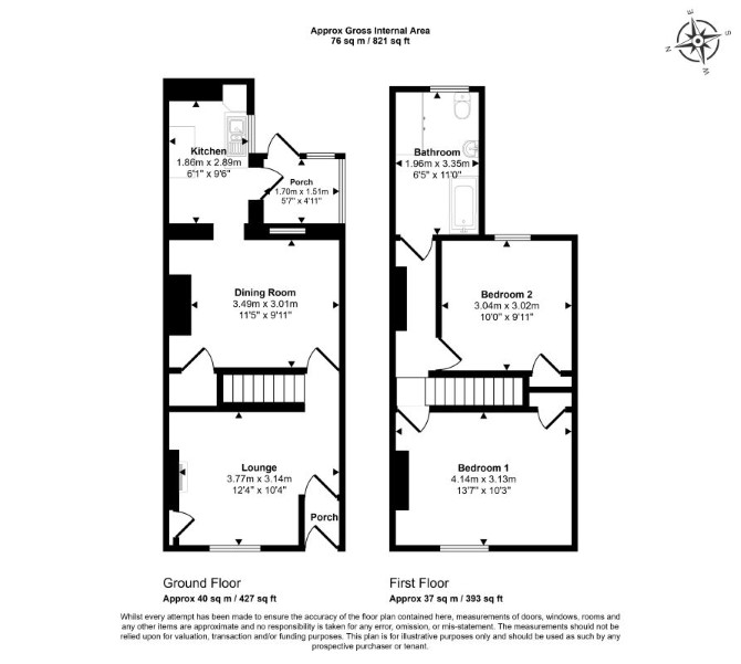 Ground Floor Two Reception Rooms Kitchen First Floor Two Bedrooms Bathroom