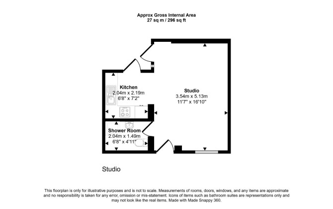 The property comprises a ground floor studio flat situated within an end of terrace building.