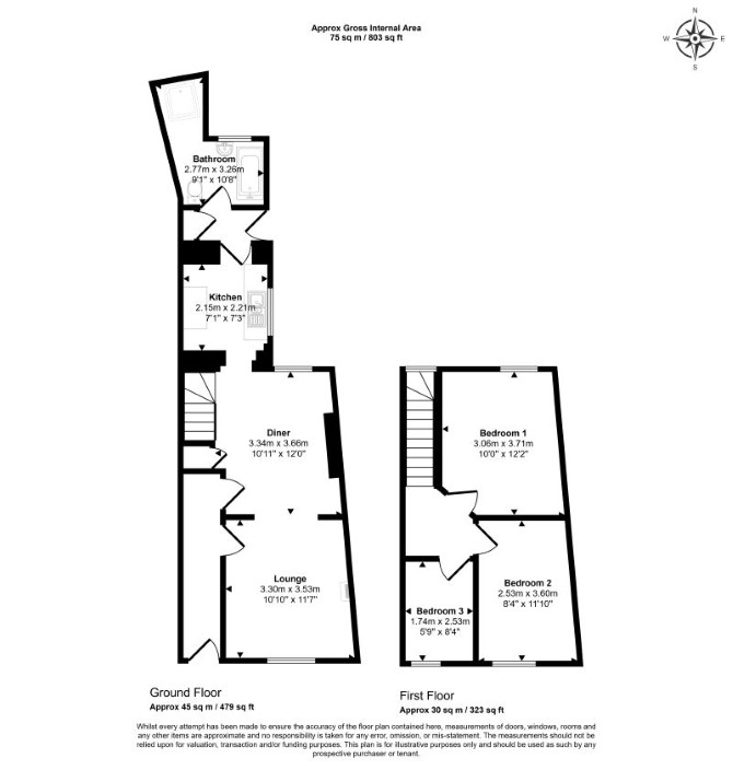 Ground Floor Through Reception Room Kitchen Bathroom First Floor Three Bedrooms