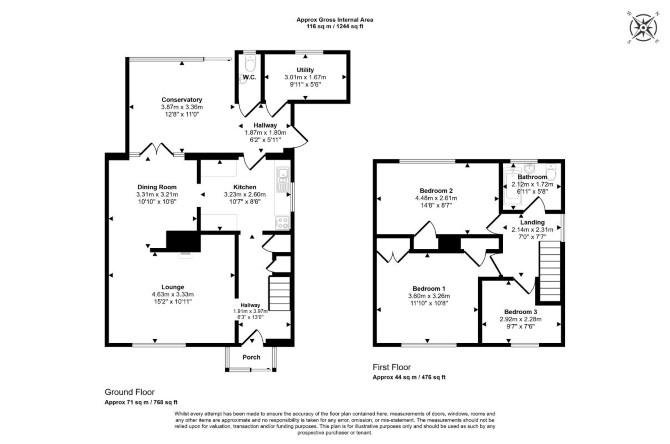 Ground Floor Reception Room Kitchen Conservatory Utility Room WC First Floor Three Bedrooms Bathroom