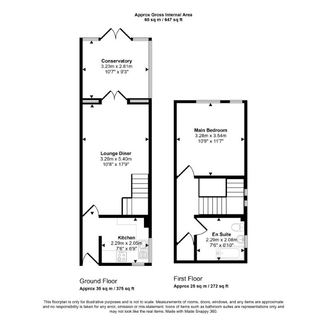 The property comprises a one bedroom end of terrace house arranged over ground and first floors.