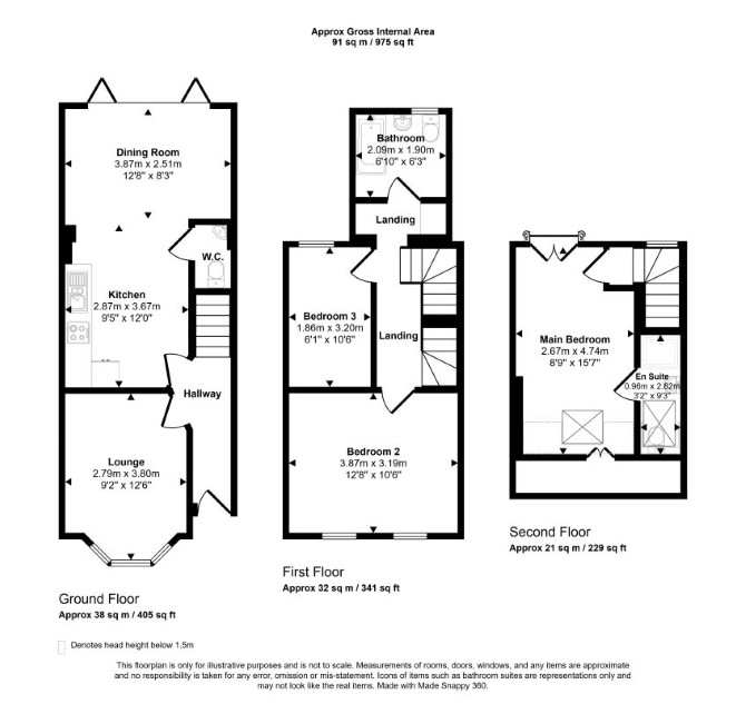 Ground Floor Reception Room Open Plan Kitchen with Dining Area First Floor Two Bedrooms Bathroom Second Floor Bedroom with Ensuite